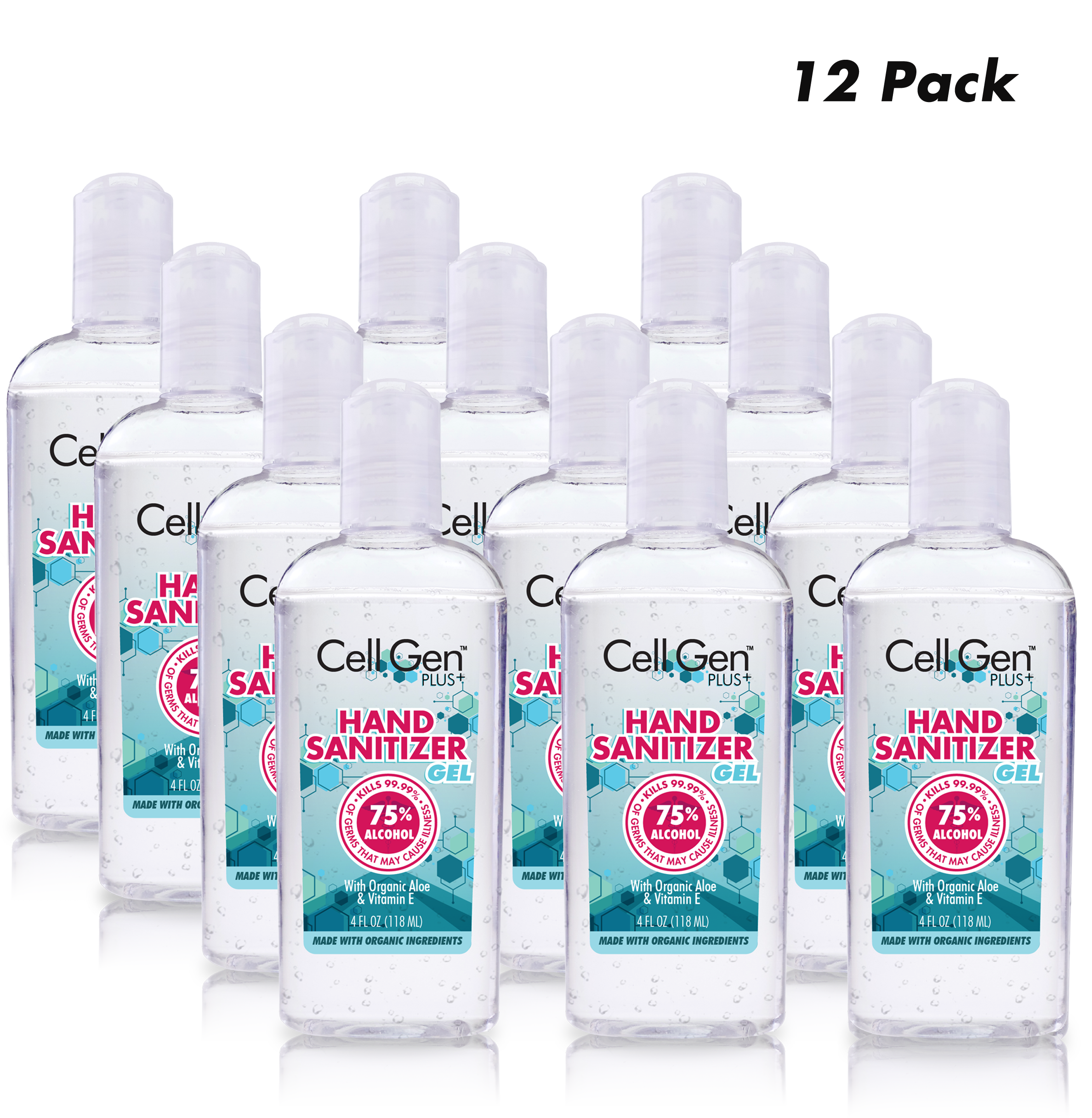 CellGen PLUS+ Gel Hand Sanitizer - 4 oz. 75% Alcohol - 12 Pack